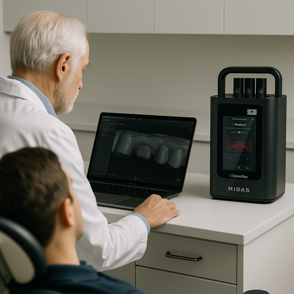 This is not just another article about 3D printing. It is a practical, clinically grounded reflection on how the Midas 3D printer (SprintRay) has overcome one of the most persistent barriers in modern dentistry: the divide between traditional analogue practice and the digital realm.